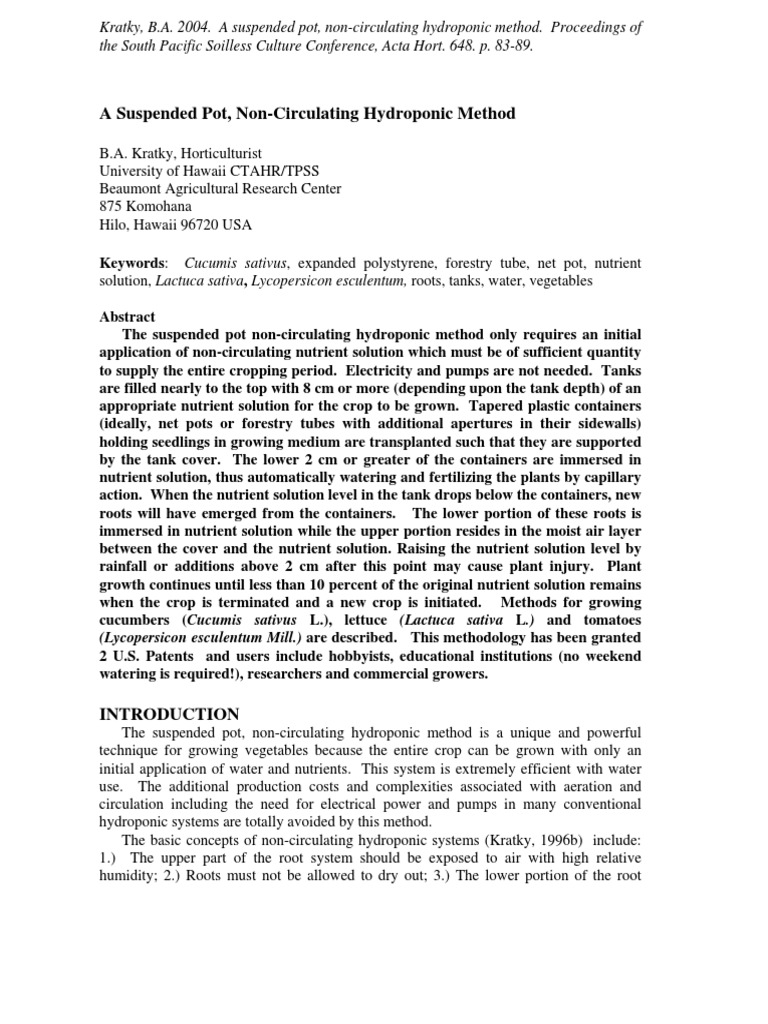 A Suspended Pot Non Circulating Hydroponic Method Hydroponics