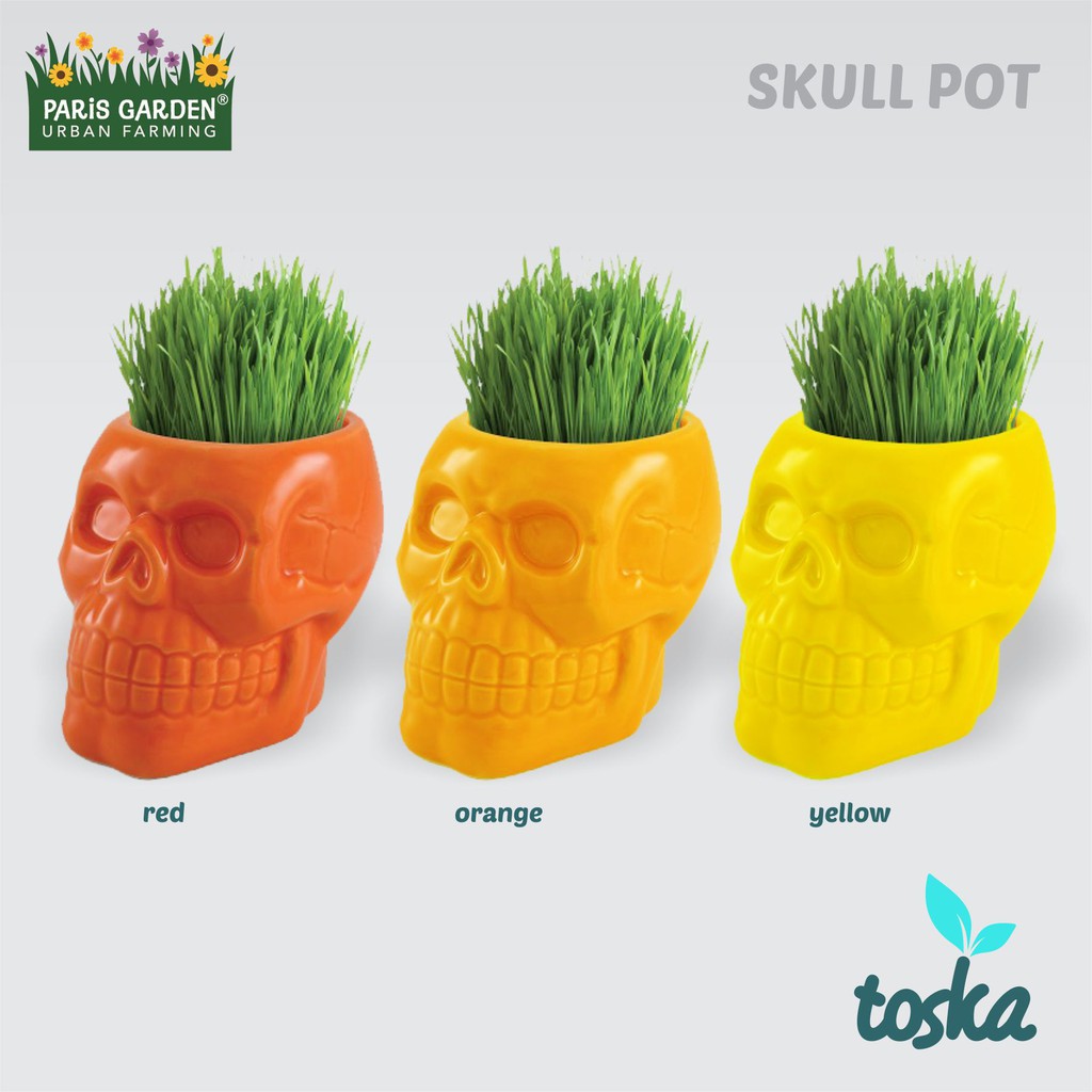 Paris Garden Skull Ceramic Pot Wheatgrass Grow Kit Shopee Indonesia